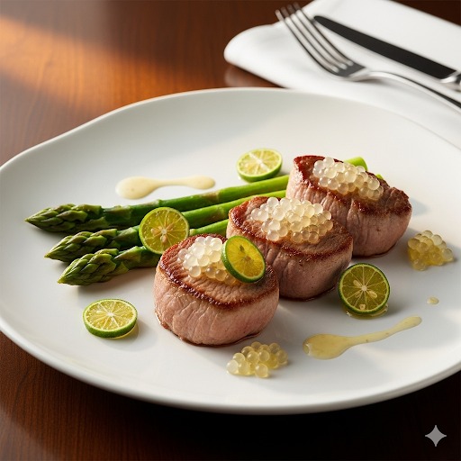 Esta receita combina a delicadeza dos escalopes de vitela com o frescor e a textura única do limão-caviar e dos aspargos. É um prato elegante e fácil de preparar, perfeito para um jantar especial.